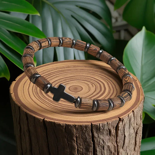 Uniwersalna drewniana bransoletka z krzyżykiem „Sanctum Terra” Uniwersalna drewniana bransoletka z krzyżykiem „Sanctum Terra”